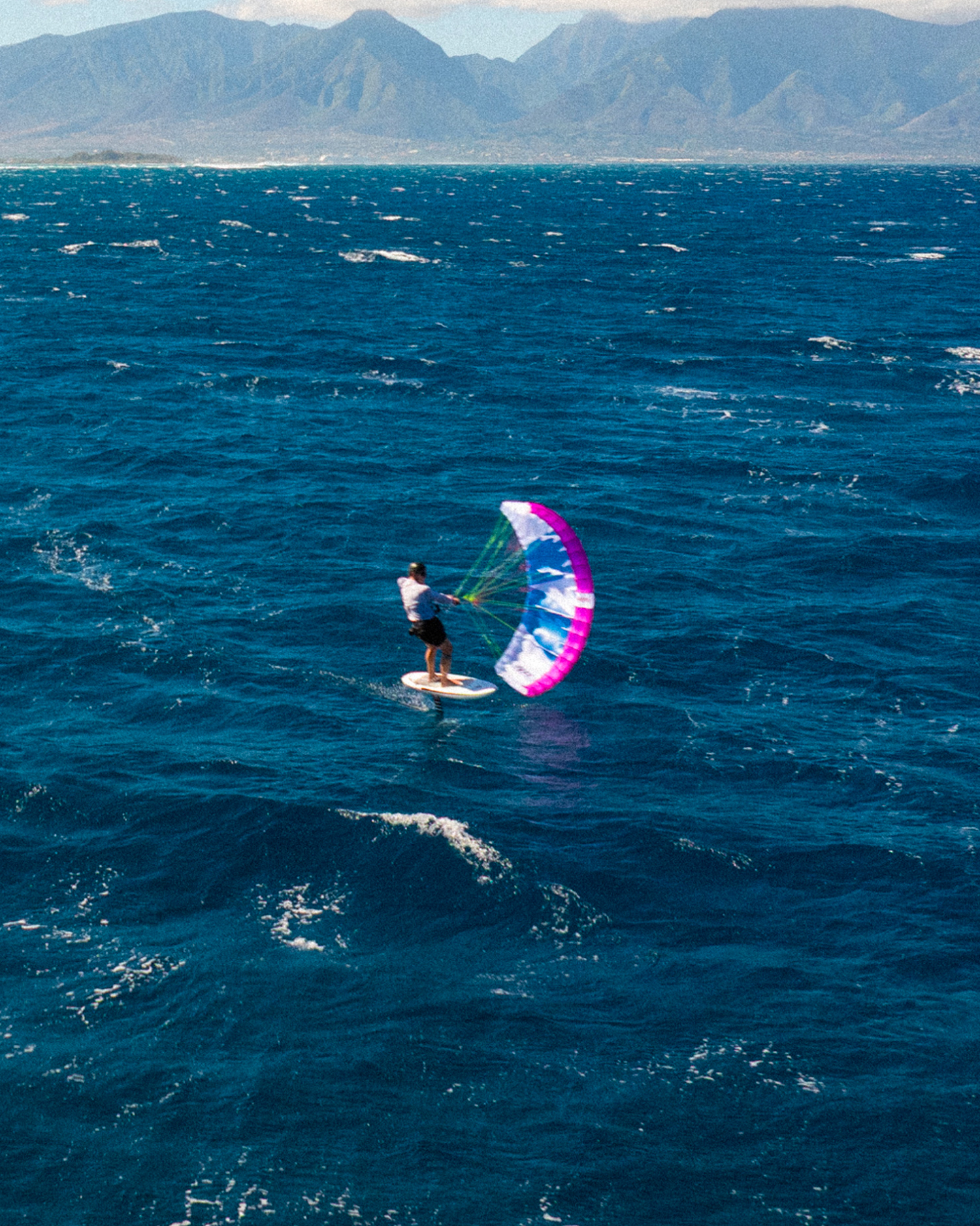 Kurze Bridles, eine hochwertige Konstruktion und unsere neue Bridge Bar sorgen für einen Parawing, der sich sofort vertraut anfühlt, wenn du bereits Erfahrung mit Wingfoiling mit einem VAYU Wing hast: direkt, ruhig und berechenbar. Mit dem PYRO kannst du sicher gegen den Wind fahren, ihn in Sekundenschnelle verstauen und mit leeren Händen vor dem Wind surfen.