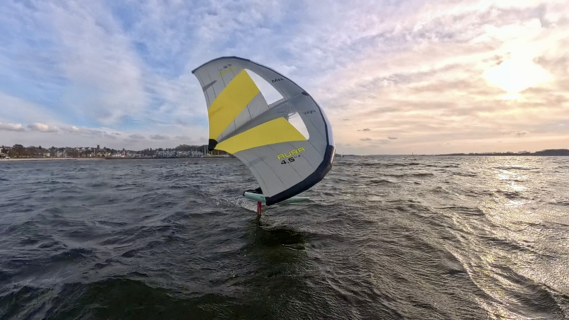 In Basis-Manövern wie Halse und Wende verhält sich der Vayu Aura 4 ebenfalls angenehm neutral. Er legt sich leicht in die Luft, sodass man ihn während der Drehung kaum wahrnimmt, und reagiert erst wieder, wenn man ihn aktiv ansteuert.