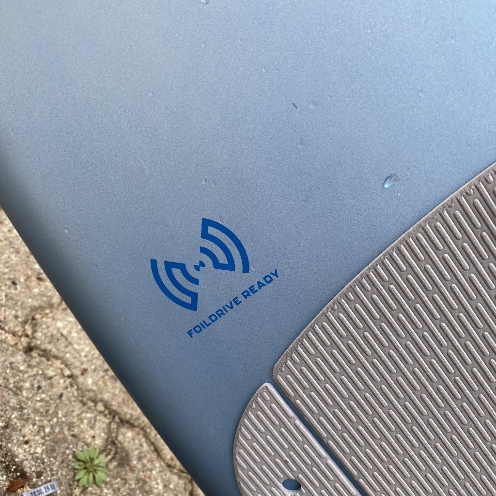 Praktisch und beinahe unverzichtbar bei einem Board dieser Dimension ist der versenkte Tragegriff auf der Unterseite. Trotz (oder gerade wegen) der schlanken Breite ist das Midi ziemlich dick (in unserem Fall ~13,7 cm an der dicksten Stelle), was es schwierig macht, es mit einer Hand unter dem Arm zu klemmen. Der integrierte Griff ist daher ein wichtiges Detail. Er liegt gut in der Hand und hilft enorm, das Board auch bei Windböen sicher zum Wasser zu tragen. Insgesamt hinterlässt das Midi 6’0’’ an Land einen sehr durchdachten Eindruck: Hochwertige Materialien, sauber verarbeitet, mit Fokus auf Performance-Details. Nicht zuletzt ist es „foildrive ready“, was bedeutet, dass das Funksignal durch das Board hindurch geht. Wir selbst haben schon erleben dürfen, dass das Signal für das E-Foil bei Vollcarbon-Boards abbricht.