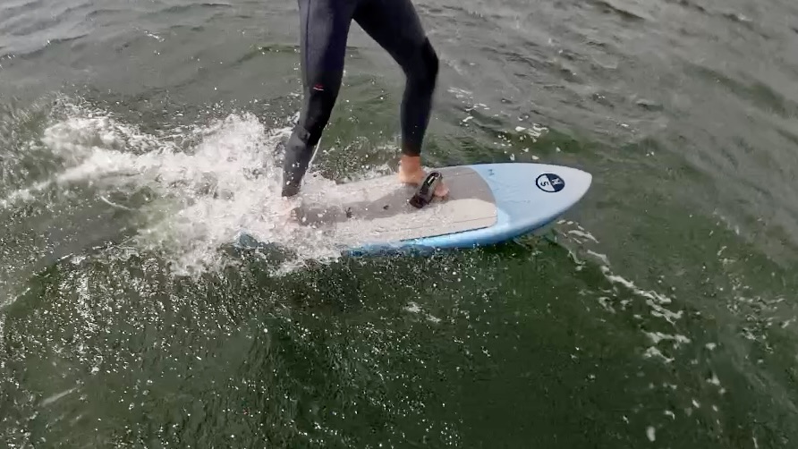 North positioniert das Midi als “Crossover-Board” – und tatsächlich haben wir es sehr vielseitig erlebt. Im Freeride macht es durch seine gleitfreudige Art auch bei böigem Wind Spaß: Man kommt früh raus und kann lange Fahrten genießen, ohne dass das Board träge wirkt. In der Welle sehen wir viel Potenzial, auch wenn wir das nur hinter dem Boat antesten konnten: Das Board fährt sich sehr surf-orientiert, man kann enge Turns wagen, ohne vom Board gebremst zu werden. Auch Downwind-Runs dürften ein interessantes Feld für das Midi sein. Rein fürs SUP-Foil-Downwinding (also ohne Wing, nur gepaddelt) ist unser 82 L Testboard auf jeden Fall zu klein – hier wären wohl die größeren Modelle oder spezialisierte Downwind-Boards wie Norths Horizon passender. Dafür dürfte das Midi im Wing-Downwinder (mit Wing in der Hand vor dem Wind abreiten) seine Vorteile ausspielen: Das Board lässt sich gut steuern und zwischenpumpen, um einzelne Wellen zu verbinden. Die lange Wasserlinie und der nose-up Shape verhindern ein Einspitzen bei Wellentalfahrten. Zudem ist das Midi laut North kompatibel mit Foil-Drive E-Motoren (dank spezieller 2.4 GHz Signal-Durchleitung im Carbonlaminat). Wir konnten mangels Zeit zwar keinen E-Test durchführen, aber dieser Hinweis zeigt: Das Board soll tatsächlich alles können – vom Wingfoilen über Prone-Surfen bis zum motorunterstützten Downwind-Foiling. In kleineren Größen kann es ein reinrassiges Prone-Foilboard sein, in größeren ein Lightwind-Wingboard. Diese Vielseitigkeit ist ein großes Plus des Midi-Konzepts. In unseren Augen trifft Norths Slogan vom „All-in-One“-Board durchaus zu.