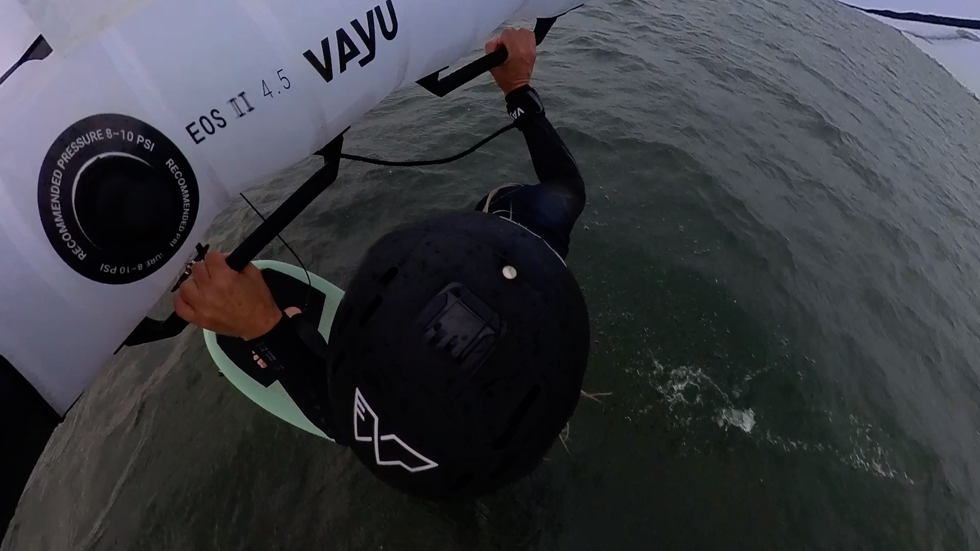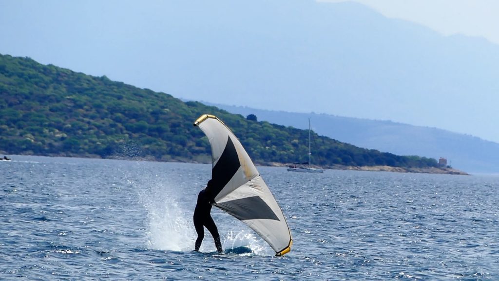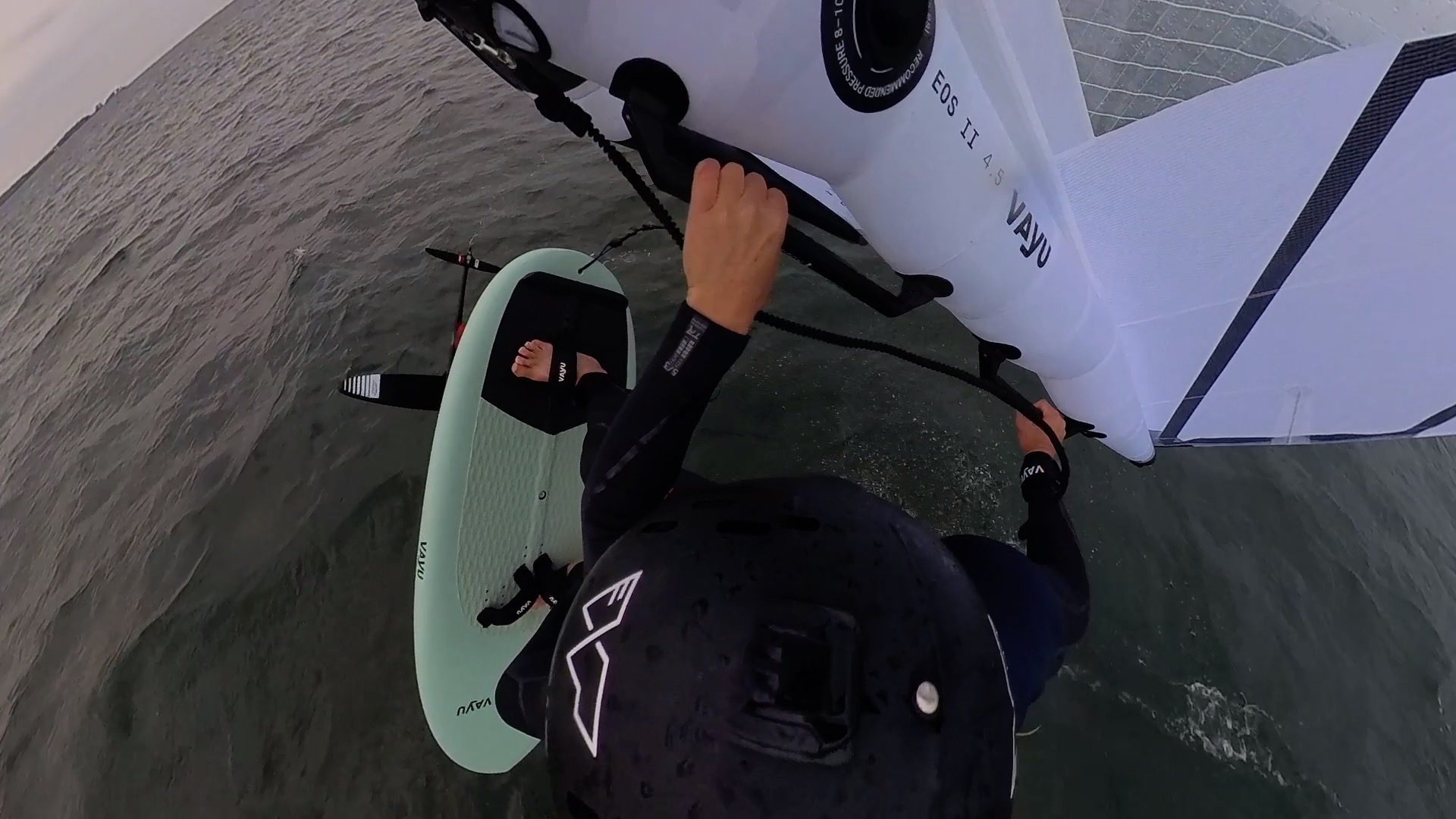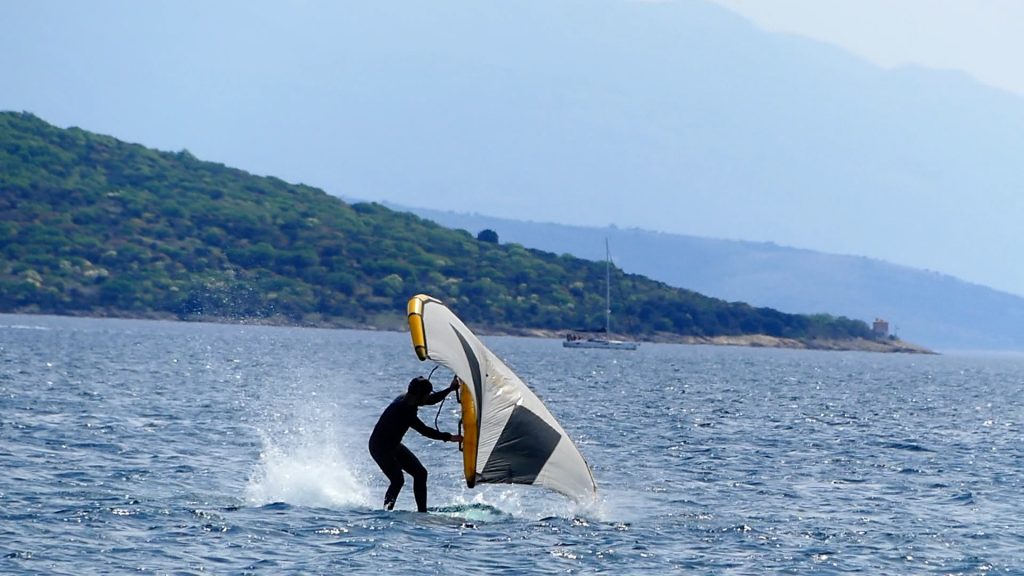 Wie bei vielen anderen Manövern gilt auch beim Wingfoil Frontside 360: der Körper folgt dem Kopf. Dort wo ich hingucke, lande ich auch, beziehungsweise folgt mein Körper der Rotation.