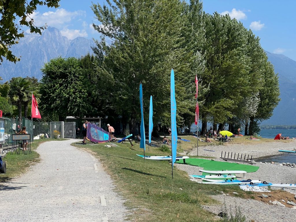 Domaso wirbt zu Recht mit dem Titel „Wind Paradise“! Zumindest in meinem Zeitraum. Die Infrastruktur drumherum ist ideal für alle Arten von „Windwassersport“ und das Klima ermöglicht Boardshortsessions. In meinen zwei Wochen war tatsächlich jeden Tag „foilbarer“ Wind. Diese Ausbeute hat man nur sehr selten.