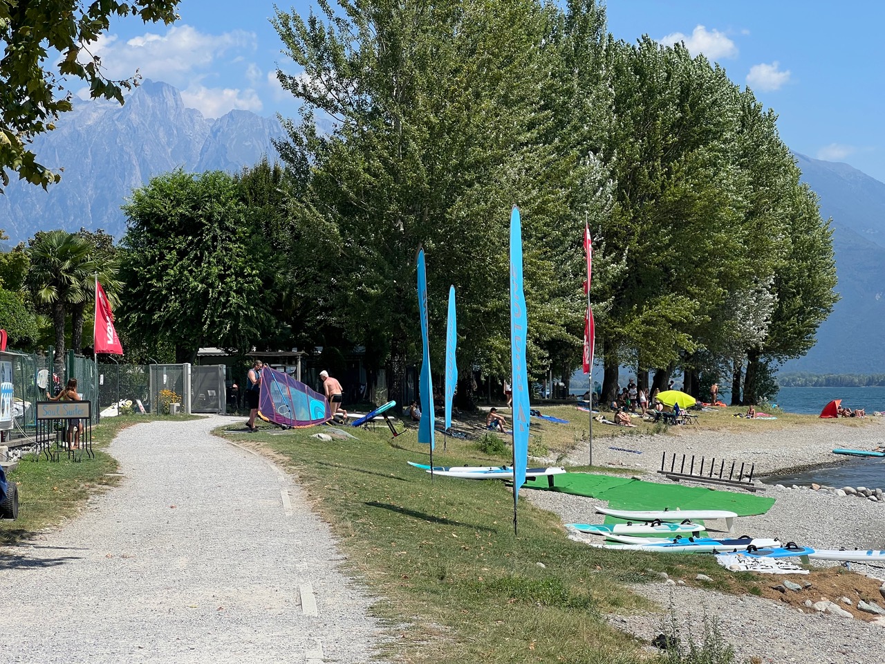 Mit Soul Surfer (https://www.windsurf-comersee.com) gibt es eine örtliche Surfschule, in der man auch Wingfoilmaterial leihen oder lagern kann.