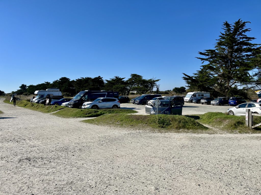 Entlang der Avenue de la Plage gibt es überall Parkmöglichkeiten, allerdings nur für Fahrzeuge unter 1,9 m. Größer Busse oder Womos können seitlich in den Stichstraßen parken, welche zur Strandstraße führen. Dies ist zumindest in der Nebensaison problemlos möglich. Zwischen Straße und Strand befindet sich eine Wiese, die sich perfekt zum Aufbauen des Wingfoil-Materials eignet. Natürlich ist auch eine Toilette nicht weit entfernt.